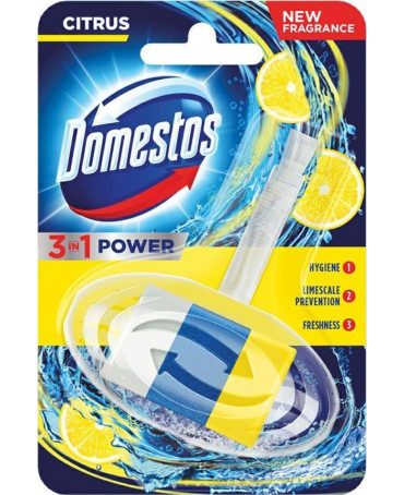 Domestos 3w1 sztywne bloki WC składają się z trzech specjalnych warstw i łączą w sobie trzy efekty: Czyści tam, gdzie rozprzestrzeniają się bakterie. Zapobiega tworzeniu się kamienia.