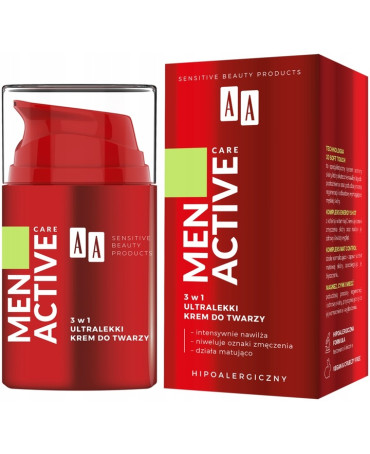 AA Men Active Care 3w1 - Ultra Lekki Krem do Twarzy, 50 ml