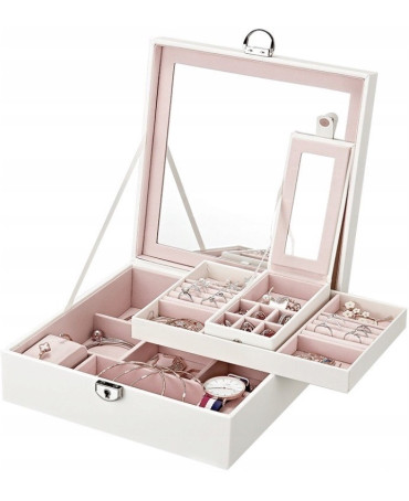 CARLA Szkatułka na Biżuterię z Lusterkiem - Biała