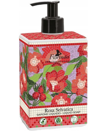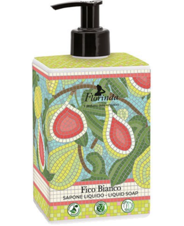 Mydło w płynie Florinda „Mosaici Italiani” o lekkiej i delikatnej formule, wzbogacone organiczną oliwą z oliwek, ekstraktem z figi, ekstraktem z malwy, ekstraktem z dziurawca i ekstraktem z organicznego nagietka.
