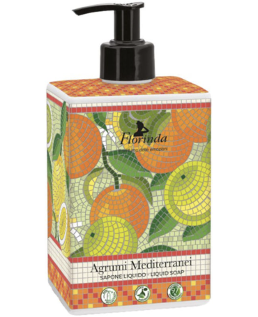 Mydło w płynie Florinda „Mosaici” o lekkiej i delikatnej formule, wzbogacone organiczną oliwą z oliwek, ekstraktem z cytryny, ekstraktem z malwy, ekstraktem z dziurawca zwyczajnego i organicznym ekstraktem z nagietka.