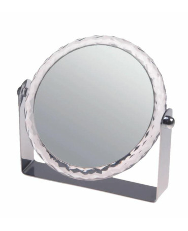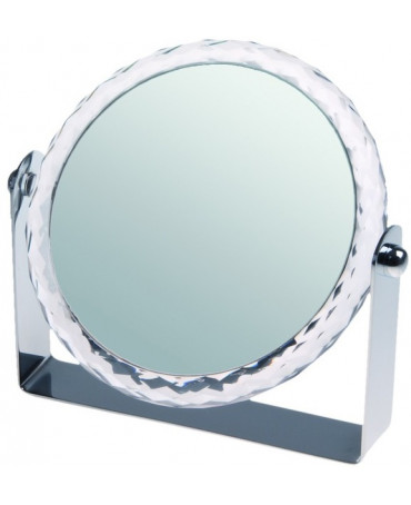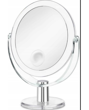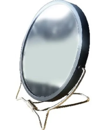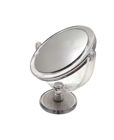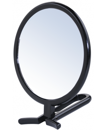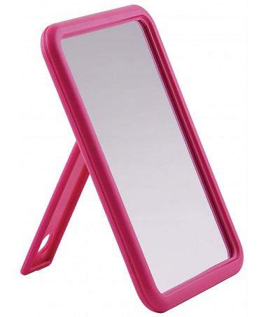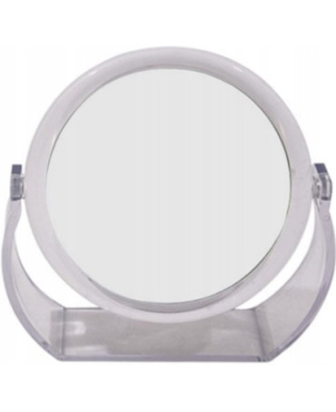 Stojące lusterko wykonane z plastiku. Szeroka stopka pozwala na stabilne ustawienie, które ułatwia komfort użytkowania.