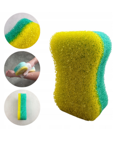 Antycellulitowa gąbka do kąpieli. Pobudza krążenie krwi, rozbijając tkankę tłuszczową. Ułatwia usuwanie martwego naskórka i dokładny peeling całego ciała, dzięki temu zwiększa elastyczność skóry i jej ukrwienie.