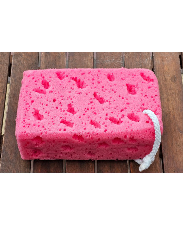Gąbka do kąpieli z dużymi porami łagodnie myje skórę. Jest miękka i przyjemna w dotyku.