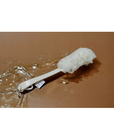 Myjka na długiej rączce bardzo wygodna przy samodzielnym myciu i masażu pleców. Długa sprężysta rączka wykonana z tworzywa sztucznego.