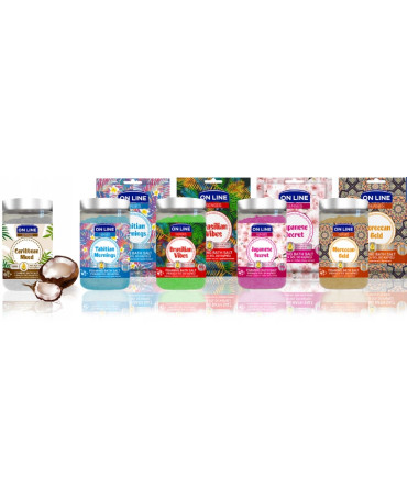 ON LINE Brasilian Vibes sól do kąpieli to produkt, który przenosi Cię na brazylijskie plaże i otacza Cię atmosferą relaksu i odprężenia podczas kąpieli.