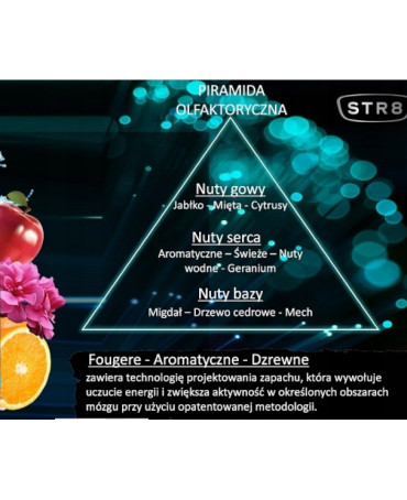 STR8 żel pod prysznic to niezwykle odświeżający kosmetyk dla prawdziwych mężczyzn. Jego orzeźwiająca kompozycja zapachowa idealnie odświeży po wyczerpującym dniu. Kąpiel z tym żelem to prawdziwa uczta dla zmysłów. Eksplozja zapachów idealnie odświeża i pobudza do działania.