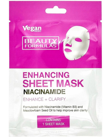Beauty Formulas Enhancing Sheet Mask to wzmacniająca maska w płacie, która zawiera niacynamid (witaminę B3) oraz olej z nasion Meadowfoam. Te składniki pomagają poprawić kondycję skóry, wzmacniając ją i rozjaśniając.
