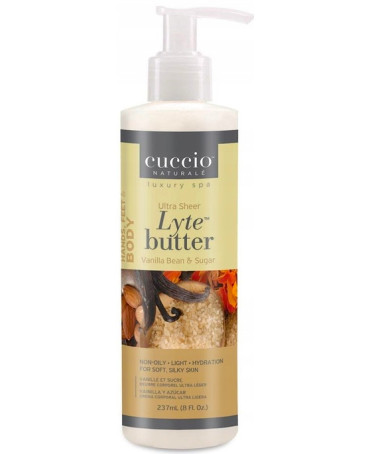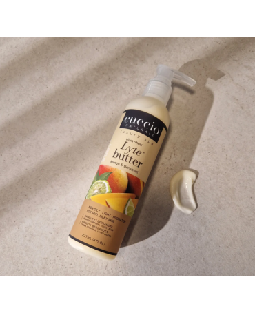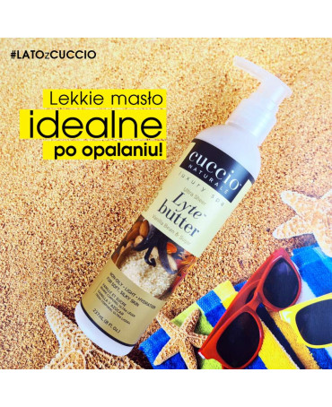 Cuccio Ultra Lekkie Masło do Ciała to produkt zapewniający 24-godzinne nawilżenie skóry. Jego niezwykle delikatna formuła bardzo szybko się wchłania, nie pozostawiając tłustej warstwy na skórze, zapewniając jednocześnie intensywne nawilżenie i ukojenie dla skóry wysuszonej słońcem, kąpielami morskimi i chlorowaną wodą.