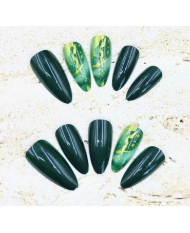 DENI CARTE Sztuczne Paznokcie - Migdał - Green Gold Marble, 24 szt