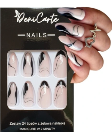 DENI CARTE Sztuczne Paznokcie - Migdał - Black Line, 24 szt