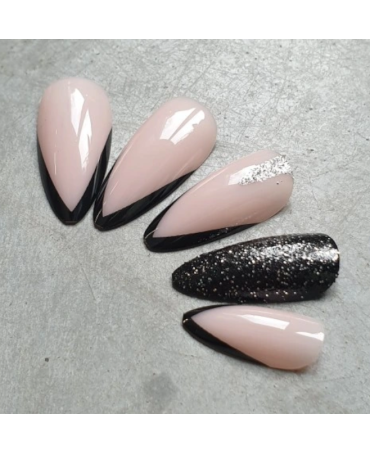 DENI CARTE Sztuczne Paznokcie - Migdał - Black French Caviar, 24 szt