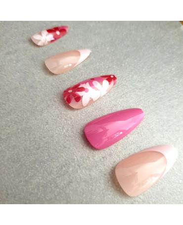 DENI CARTE Sztuczne Paznokcie - Migdał - Pink Flowers, 24 szt