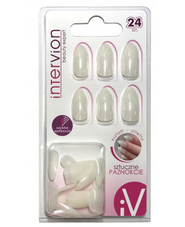 INTER VION - Sztuczne Paznokcie - Stiletto - Mleczne, 24 szt