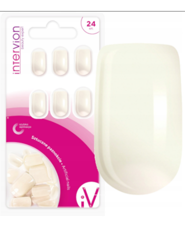 INTER VION - Sztuczne Paznokcie - Owalne - Mleczne, 24 szt