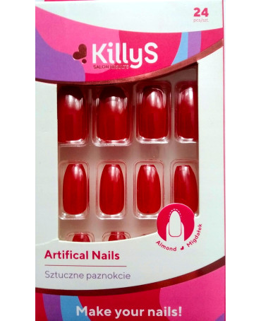 KILLYS Sztuczne Paznokcie - Migdałki - Czerwone, 24 szt