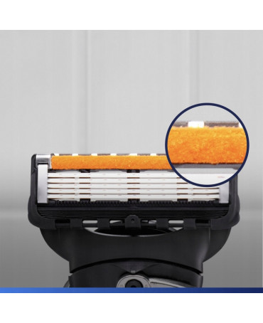 Wkłady wymienne do maszynki do golenia dla mężczyzn Gillette Fusion5 Start posiadają 5 ostrzy zapewniających większy komfort (w porównaniu z Blue3) oraz pasek nawilżający, który zapewnia komfortowy poślizg maszynki po skórze.