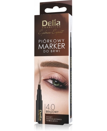 DELIA Piórkowy marker do brwi 4.0 BRĄZOWY to codzienny kosmetyk, który został zainspirowany profesjonalnym makijażem permanentnym wykonanym metodą piórkową. Ten innowacyjny produkt posiada precyzyjny aplikator, który umożliwia uzyskanie efektu „dodatkowych włosków”, co pozwala na naturalny wygląd brwi.