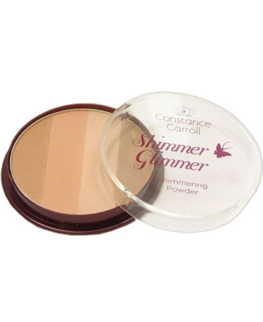 Constance Carroll Glimmer Shimmer Puder & Rozświetlacz - 2 Gold Shimmer to kosmetyk, który łączy w sobie właściwości pudru oraz rozświetlacza. Idealny dla osób, które chcą dodać swojej cerze zdrowego blasku i efektu muśnięcia słońcem. Dzięki drobnym, połyskującym drobinkom, produkt zapewnia subtelne rozświetlenie, które podkreśla naturalne piękno skóry.