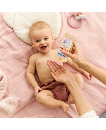 Delikatnie pielęgnuje wrażliwą skórę niemowląt, dzięki zawartości wysokogatunkowych olejów roślinnych z dodatkiem stabilizowanej witaminy F.