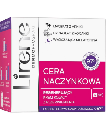 Krem maska na noc o obfitym, wegańskim składzie to doskonałe rozwiązanie do pielęgnacji skóry naczynkowej, z tendencją do rozszerzonych naczynek, okresowej nadreaktywności oraz problemów z przesuszeniem, łuszczeniem i szorstkością.