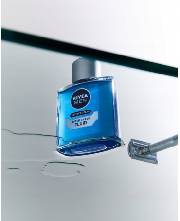 Woda po goleniu NIVEA MEN Protect & Care zapewnia natychmiastowe ukojenie i orzeźwienie skórze po goleniu. Dzięki specjalnej formule z Prowitaminą B5 i aloesem, szybko przywraca skórze komfort, pielęgnuje ją i wspiera jej regenerację. Łagodzi podrażnienia, chroni przed wysuszeniem i utrzymuje odpowiednie nawilżenie skóry.