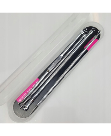 Zestaw łyżeczek Unny to praktyczny narzędziowy zestaw zaprojektowany do bezpiecznego usuwania zaskórników, wągrów i pryszczy. Każda łyżeczka posiada profesjonalną pętelkę, która umożliwia precyzyjne działanie przy usuwaniu zanieczyszczeń na twarzy.