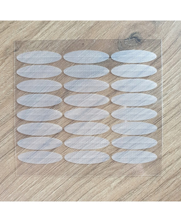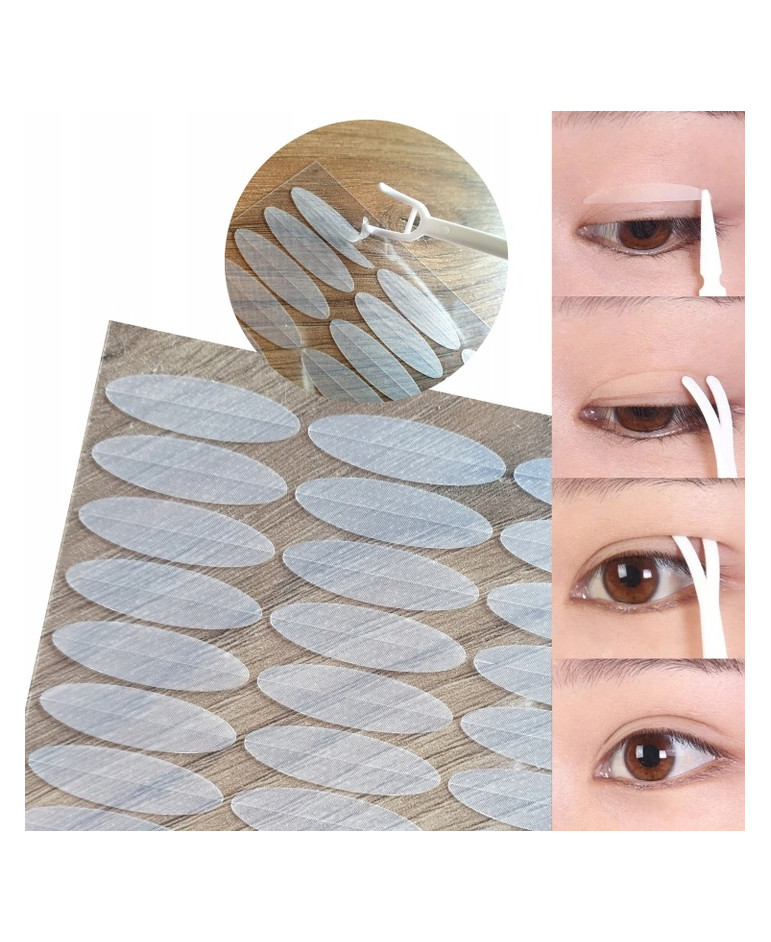 Samoprzylepne tasiemki do podklejania powiek korygujące opadające powieki. Dzięki materiałowi z którego zostały wyprodukowane (elastyczna medyczna guma) załamanie można układać w dowolny sposób.