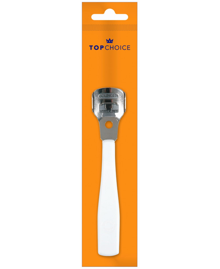 Przyrząd do pedicure Solingen ze stali szlachetnej, Przeznaczony jest do ścinania zrogowaciałego, martwego naskórka. Niezastąpiony przy profesjonalnym pedicure, ergonomiczna rączka gwarantuje stabilny uchwyt w dłoni. Przyrząd nadaje się do sterylizacji.