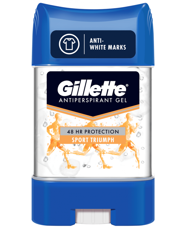 Gillette zapewnia skuteczną i długotrwałą ochronę przed potem w formie lekkich, orzeźwiających zapachów, abyś mógł czuć się czysto i świeżo przez cały dzień. Antyperspirant w żelu Gillette Triumph Sport wykorzystuje skuteczną technologię, która zapewnia długotrwałą świeżość, abyś mógł czuć się czysto, świeżo i komfortowo.