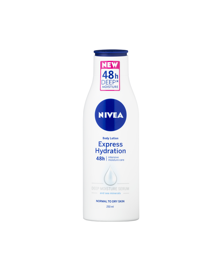 Balsam do ciała NIVEA Express Hydration Balsam to idealna pielęgnacja dla suchej oraz normalnej skóry. Nivea zapewnia wszystkie odżywcze skłaniki których potrzebuje i na które zasługuje Twoja skóra. Innowacyjna formuła z Minerałami Morskimi zapewnia kompleksowe nawilżenie- przez cały dzień. Opatentowana formuła NIVEA wykorzystuje wiedzę, zgodnie z którą nasza skóra zawiera wystarczającą ilość wilgoci w swoich głębszych warstwach.