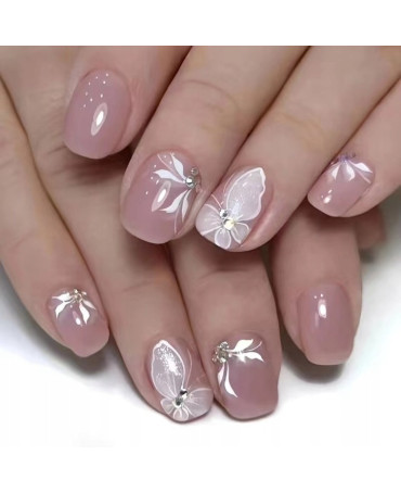 DENI CARTE Sztuczne Paznokcie - Square - 7394 Biały Motyl