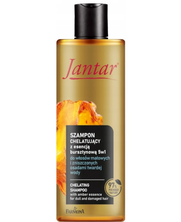 Jantar Szampon chelatujący z wyciągiem z bursztynu 5w1 to kosmetyk stworzony do pielęgnacji włosów matowych i zniszczonych osadami twardej wody. Ta seria kosmetyków inspirowana jest bogactwem natury i opiera się na wyciągu z bursztynu, który znany jest ze swoich wyjątkowych właściwości.