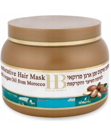 Innowacyjna maseczka do pielęgnacji suchych i zniszczonych włosów. Oparta na bazie olejku z orzechów marokańskich (arganowych) rosnących w górach Atlas, z dodatkiem oliwy z oliwek, olejku jojoba, krzemu, witamin A, E i prowitaminy B5 oraz aktywnych minerałów z Morza Martwego.