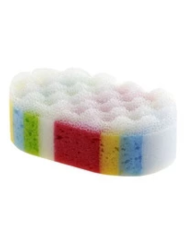 Gąbka do kąpieli z dużymi porami łagodnie myje skórę. Jest miękka i przyjemna w dotyku.