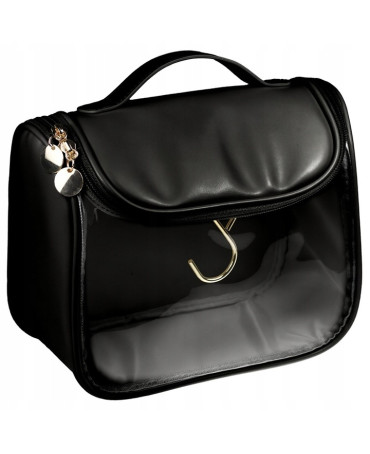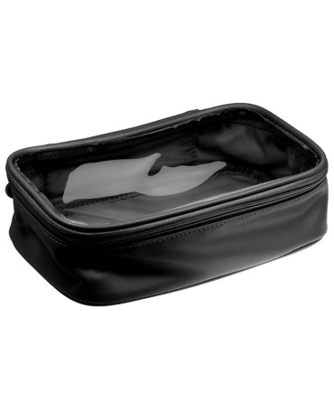 Mała kosmetyczka w kolorze czarnym. Posiada transparentne okienko. Poręczna i elegancka. Dzięki kompaktowemu rozmiarowi idealnie sprawdzi się podczas podróży.