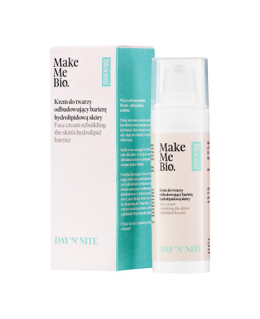 Krem do twarzy Make Me Bio odbudowujący barierę hydrolipidową skóry i zapewniający jej długotrwałe nawilżenie przez cały dzień. Krem skutecznie zapobiega utracie wilgoci oraz składników aktywnych. Idealny dla każdego rodzaju skóry.