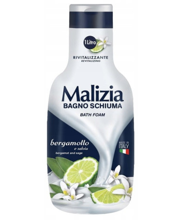 Płyn do kąpieli marki Malizia o wyjątkowym zapachu owoców bergamoty i szałwii. Duża pojemność w poręcznej butelce!