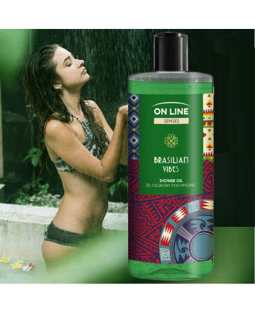 ON LINE Olejkowy żel pod prysznic Brasilian Vibes to energetyzujący kosmetyk, który przeniesie Cię w świat brazylijskiej radości i żywiołowości. Formuła wzbogacona naturalnymi olejkami delikatnie oczyszcza skórę, jednocześnie ją nawilżając i odżywiając. Żel otula ciało egzotycznym zapachem, który pobudza zmysły i dodaje energii na cały dzień.