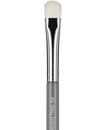Niewielki pędzel do cieni o spłaszczonym kształcie i dość zwartym włosiu świetnie poradzi sobie z aplikacją cieni na powiekę ruchomą oraz rozcieraniem ich na mniejszych powierzchniach, wzdłuż linii rzęs i na dolnej powiece.