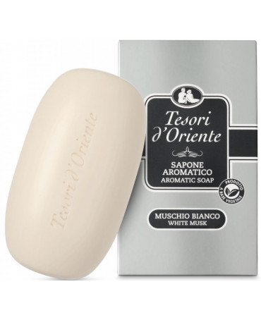 Aromatyczne mydło w kostce Tesori d'Oriente Muschio Bianco o zapachu białego piżma.