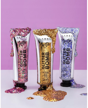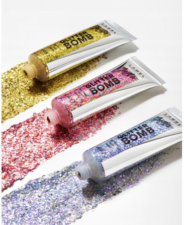 Przezroczysta żelowa konsystencja z holograficznymi drobinkami do twarzy i ciała.