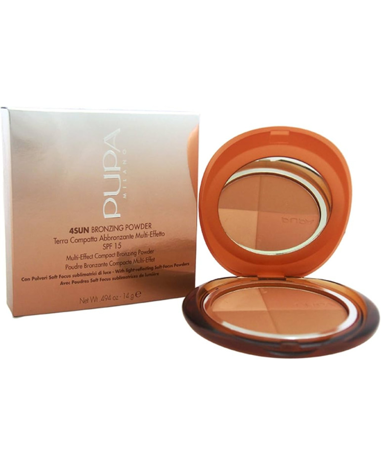 4SUN BRONZING POWDER Multi-Effect Tanning Compact Powder to produkt opalający w pełnym tego słowa znaczeniu. Ten nowy kompaktowy bronzer ma tę zaletę, że ma wiele efektów: 4 odcienie, naturalny i matowy, do stosowania indywidualnie lub w połączeniu w zależności od pory roku i karnacji, aby uzyskać stopniowy efekt opalenizny.