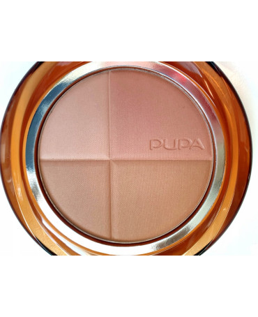Puder o lekkiej, jedwabistej konsystencji. Składa się z 4 różnych odcieni brązu. Dowolnie zmieszane ze sobą nadają skórze promienny blask i delikatny efekt naturalnej opalenizny. Idealny do modelowania twarzy.