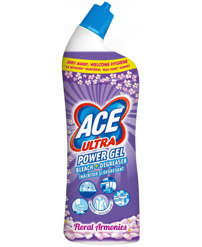 Odtłuszczający żel z wybielaczem Ace Ultra Power Gel przeznaczony jest do białych powierzchni i tkanin. Niezwykle skuteczny i profesjonalny produkt, który bez większego trudu usunie wszelkie zabrudzenia w łazience, czy kuchni.