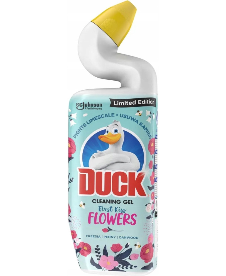 Duck® Deep Action Gel First Kiss Flowers to środek do czyszczenia i odświeżania muszli klozetowej, który w 99,9% eliminuje zasiedlające ją zarazki.
