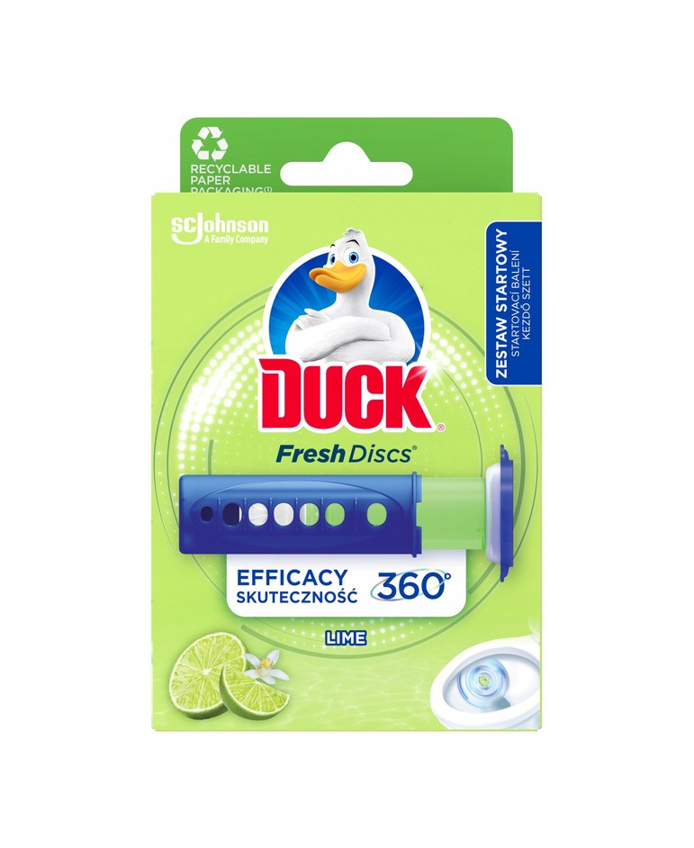 Duck Fresh Discs trzyma z dala zabrudzenia i nieprzyjemne zapachy od Twojej toalety oraz odświeża ją przy każdym spłukaniu, nadając toalecie przyjemnego limonkowego zapachu.