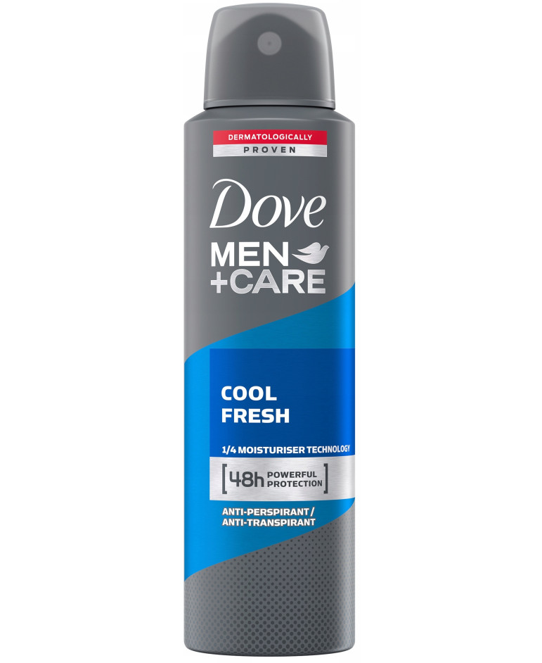 Antyperspirant w sprayu Dove Men+Care Cool Fresh redukuje potliwość, chroniąc jednocześnie Twoją skórę. Produkt został stworzony tak, aby zwalczać nieprzyjemny zapach i wilgoć do 48 godzin, a ¼ kremu nawilżającego pomaga chronić skórę przed wysuszeniem.