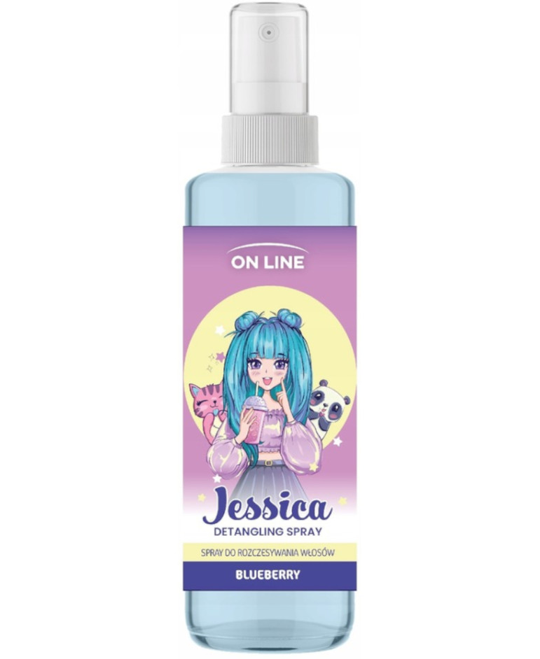 Spray do włosów On Line Kids Jessica ułatwia rozczesywanie włosów, wzmacnia je, nabłyszcza i wygładza. Chroni przed łamaniem i elektryzowaniem się włosów, a także pozostawia na nich przyjemny zapach muffinki. Jego delikatna formuła zawiera aż 94% składników pochodzenia naturalnego.