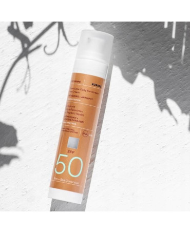 Lekki, rozświetlający krem z filtrem przeciwsłonecznym SPF 50, który natychmiast dodaje skórze blasku, jednocześnie chroniąc przed fotostarzeniem - główną przyczyną przedwczesnego starzenia się skóry.